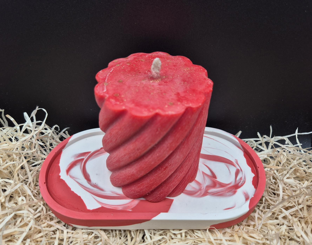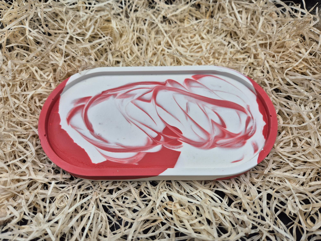 Plateau ovale en jesmonite marbré rouge