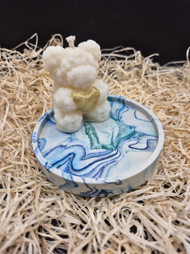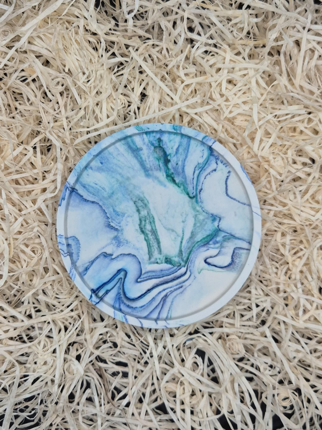 Plateau rond en jesmonite marbré vert et bleu