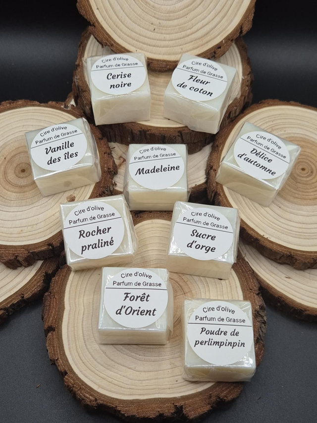 Petit morceau de cire parfumée qui, en fondant, libère rapidement des senteurs plus puissantes que celles d’une bougie.