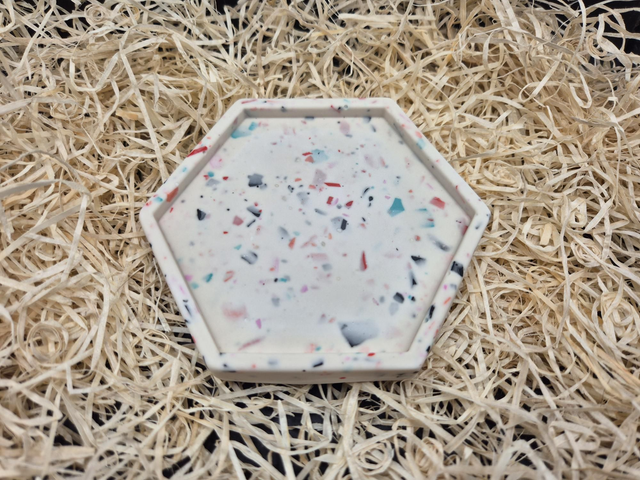 La jesmonite est un matériau innovant associant une base minérale issue du gypse (pierre à plâtre) à un liant acrylique sans solvant. Formulée à base d’eau, dépourvue de COV (composés organiques volatils) et reconnue pour sa durabilité, elle s’inscrit parfaitement dans une démarche de création plus respectueuse de l’environnement.